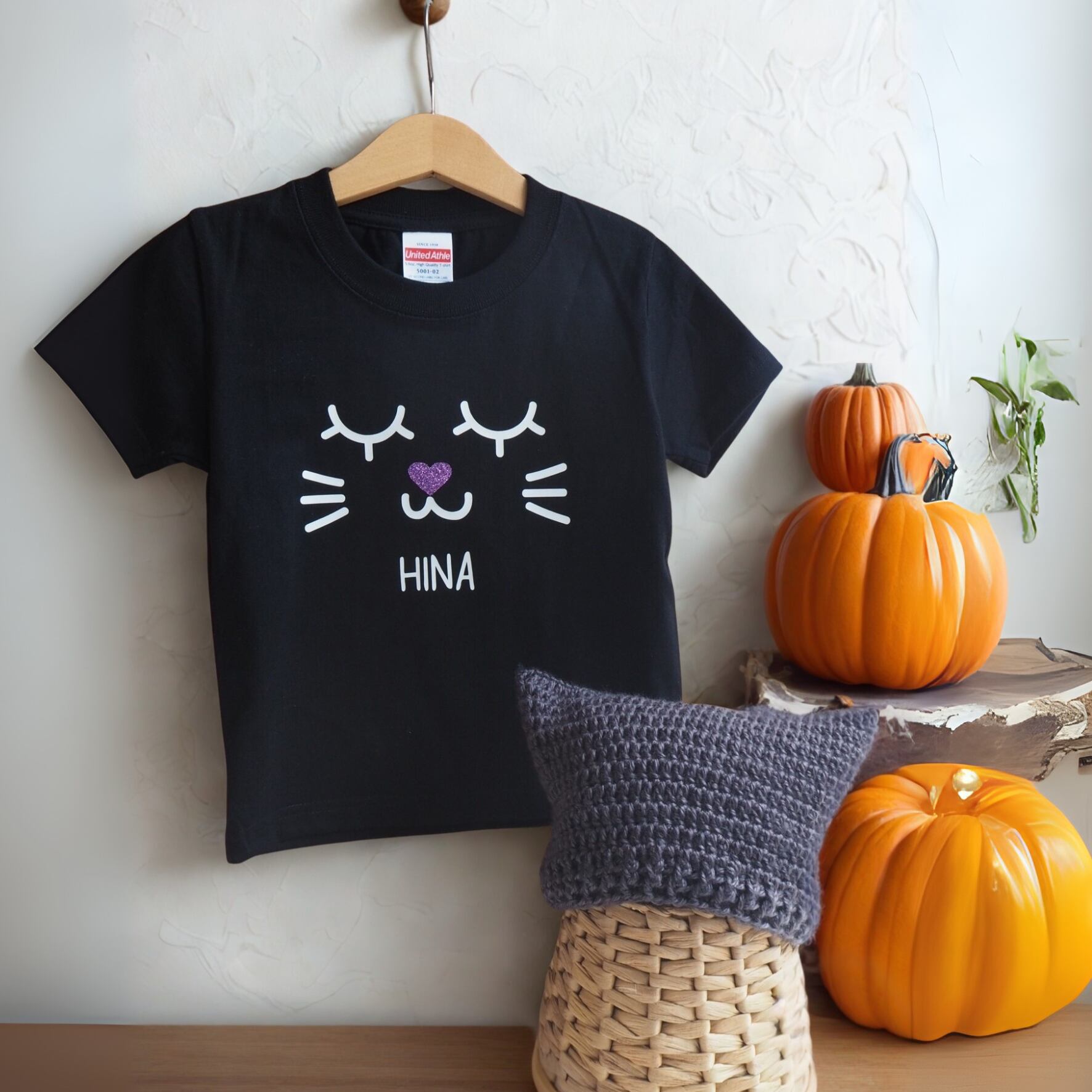Halloween(ハロウィン)黒猫お名前入りTシャツ(半袖)