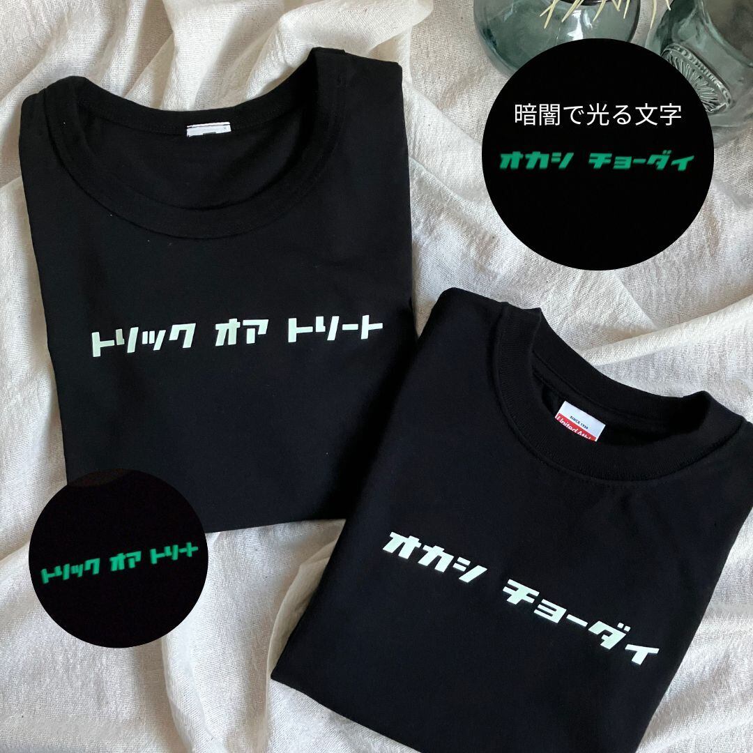 暗闇で光る文字!ハロウィンカタカナTシャツ(半袖)